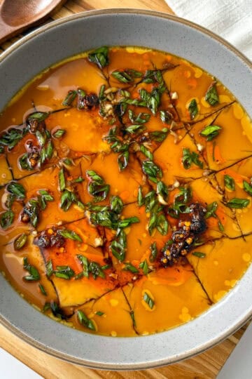 Tomato Poached Fish with Shallot Oil